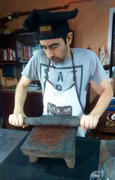 Eduardo’s knowledge of all things chocolate is undeniable and his enthusiasm is contagious. He shared with us the history of chocolate, from the Olmec people to the Mayans to the Spanish. At his direction, we donned aprons and chef’s hats, ground the cacao seeds, mixed in various ingredients, and molded our own chocolate bars. We sampled more than twenty flavors of chocolate manufactured at the facility.He engaged with us personally, responding to every question we posed, seemingly never rushing his answers to make way for the next group. By the end of the tour, Eduardo’s passion had become my passion. Rather than being glad the tour was over, I had a desire to know even more about chocolate.